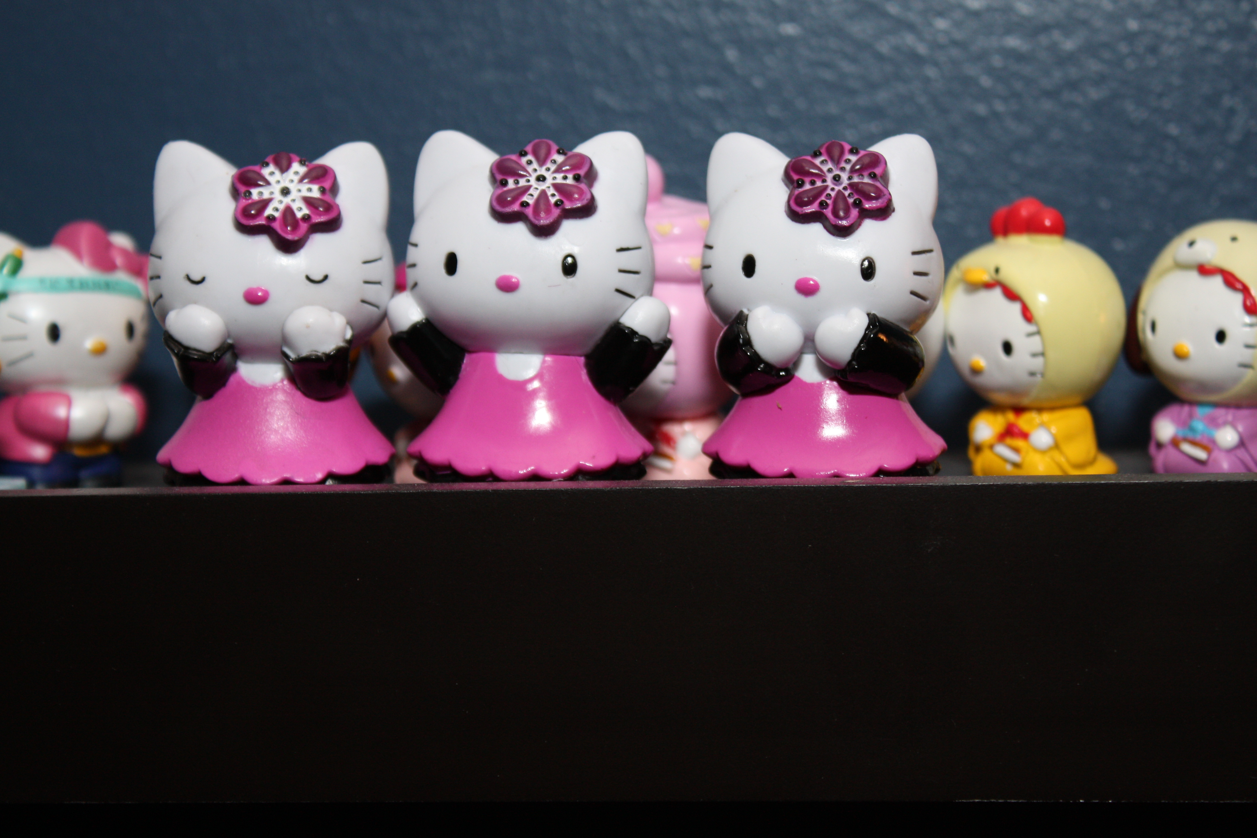 GeekVie de femme Helloooooo Kitty! Par Marie Noelle Marineau - 30 juillet 2010 0 Partager sur Facebook Tweeter sur twitter J’aime bien Hello Kitty, c’est un petit chaton tellement cute… et en plus, y’a plein d’objet dérivé hello kitty! 🙂 Mon chum me gâte énormément avec les objets dérivés HK, voici la pointe de l’iceberg: mes figurines.
