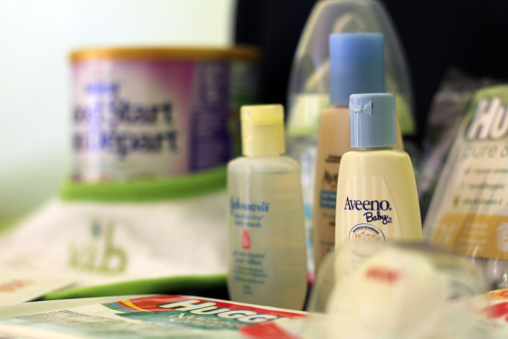 En s’inscrivant au registre chez toys r’us/babies r’us on reçoit un sac cadeau avec des échantillons (échantillon de produits d’hygiène et de crème pour les mamelons, biberon, suce, échantillon de lingettes, coupons-rabais…) et aussi quand on s’inscrit chez thyme maternité pour leur carte de membre (gratuite), on a quelque échantillons et des coupons.