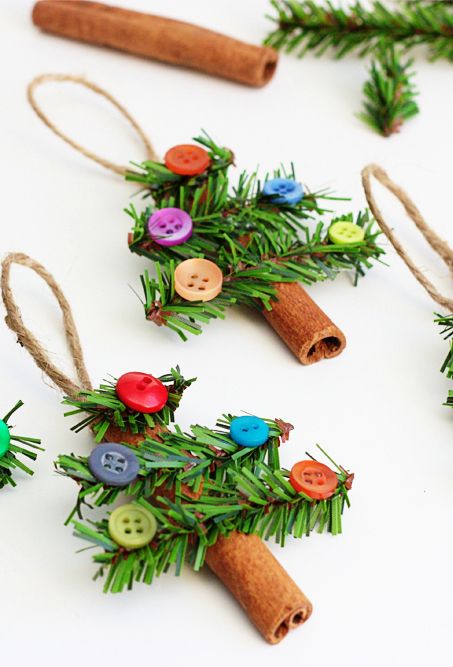 J’adore les sapins avec des branches de sapins et les bâtonnets de canelle .