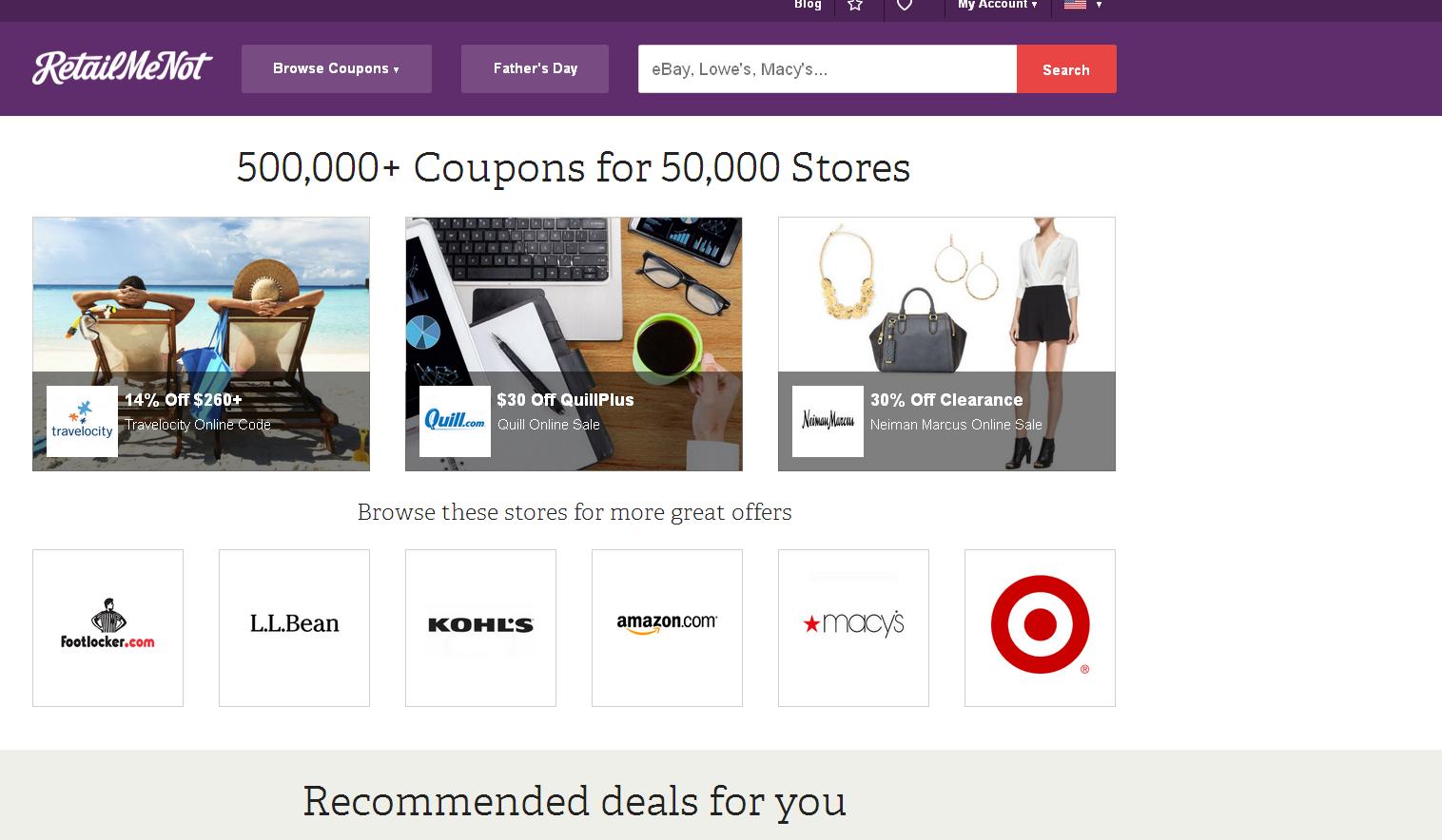 Pour les achats en ligne, Retail Me Not est une destination à ne pas rater. Vous pouvez obtenir des codes promos pour plusieurs sites populaires que vous ne pourriez vraiment trouver ailleurs, par exemple des codes réservés aux membres de newsletters ou de page Facebook… mais comme certains les partagent, ils se retrouvent sur ce site, juste pour nous!