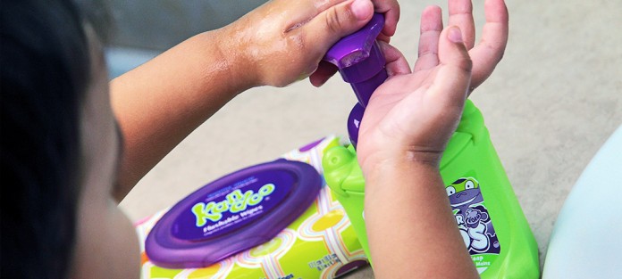 - Avoir un savon que les enfants aiment: dans notre cas, c’est le Savon hydratant pour les mains Kandoo! C’est une mousse mauve qui sent vraiment bon (nous avons la sorte Funny Berry) et les enfants adorent que la pompe à savon ressemble à une grenouille!