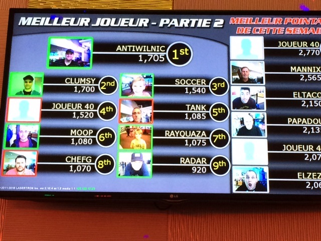 Avant de commencer la partie, chaque joueur doit s’enregistrer avec un nom de code et une photo est prise pour le tableau de pointage. Vous recevrez aussi le tableau par courriel après les parties.