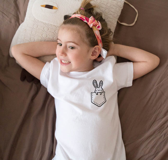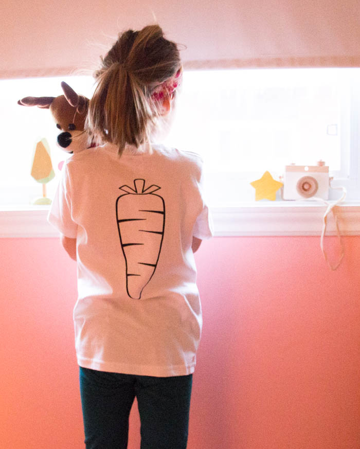 J’ai laissé ma fille choisir son chandail préféré et son coup de cœur a été pour celui avec un lapin caché dans une poche sur le devant et une carotte dans le dos. Le genre de chandail qui me rend bien contente d’avoir 3 filles pour qu’il puisse faire longtemps, longtemps!