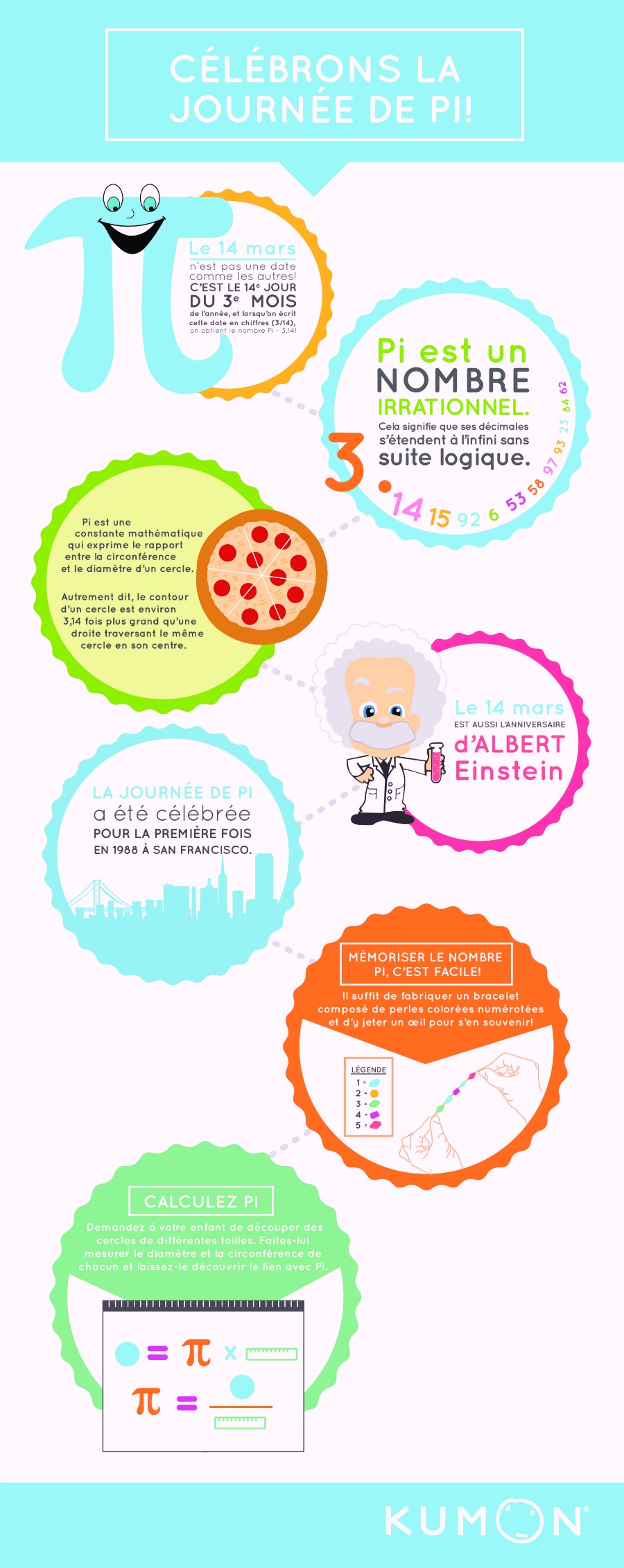 Saviez-vous qu’il existait une journée pour célébrer le nombre Pi? Le nombre Pi? Oui, oui, fouillez dans votre tête, vous allez vous en souvenir! C’est ce nombre avec des décimales qui se succèdent à l’infini. La journée de Pi, c’est le 14 mars prochain (à 13h59 pour être précise!). Comme nous prenons toutes les occasions qui s’offrent à nous pour faire des apprentissages variés, je vais encore une fois proposer des activités aux garçons et voir s’ils ont envie que je leur parle un peu du nombre Pi.