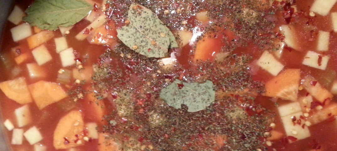 - Ajouter les feuilles de Laurier, le basilic et le chili broyé.