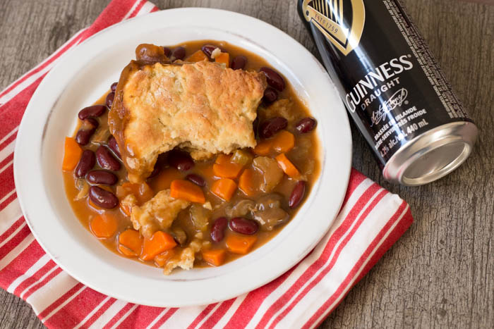 Un ragoût à la bière? Un biscuit de pomme de terre? Avouez que c’est intrigant! J’ai cuisiné cette recette de Isa Chandra et j’ai été vraiment surprise à quel point c’était goûteux! J’ai utilisé la bière Guinness, mais je pense que n’importe quelle bière forte pourrait faire l’affaire.
