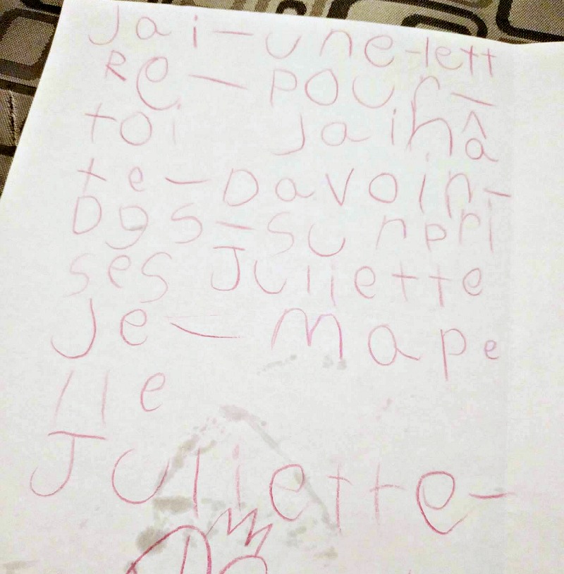 On arrive à la maison, elle court pour entrer et se dirige vers la boîte que j’ai laissée bien en évidence. Ensuite, elle va dans la salle de bain et découvre sa porte. Quel moment magique! Nous avons donc lu les instructions et elle est allée faire une carte de bienvenue à sa fée.