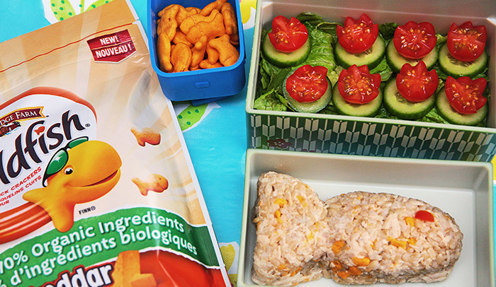 Connaissez-vous les bento? Valérie nous en avait parlé en détail dans cet article et pour résumer, le bento est un repas en coffret et il est souvent créatif! Si en Amérique du Nord, on retrouve souvent les célèbres sandwiches dans les boîtes à lunch au Japon, c’est plutôt les onigiri qui font fureur. Pour célébrer la sortie des nouveaux craquelins Goldfish Cheddar avec 70 % d’ingrédients biologiques, j’ai décidé de créer un bento qui viendra mettre de la joie dans l’heure du dîner de votre enfant (ou dans le votre, pourquoi pas!).
