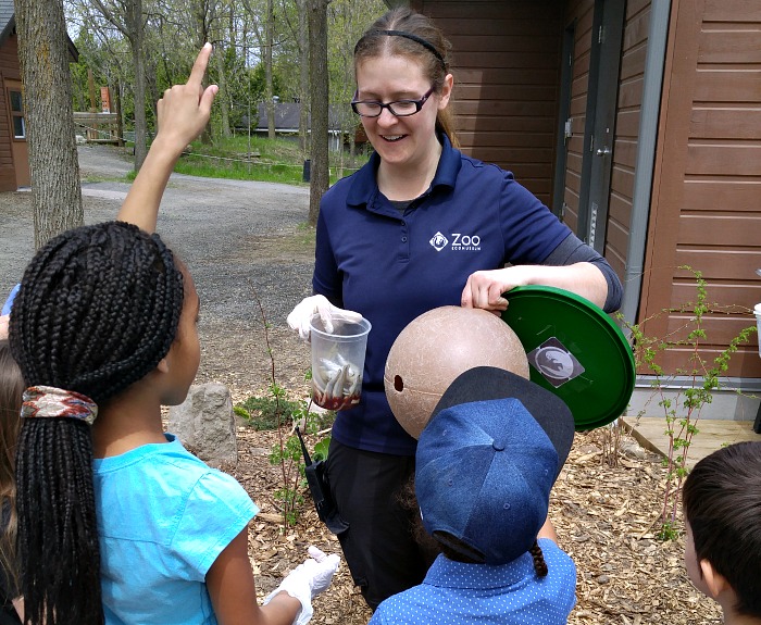Lors de notre passage, nous avons eu la chance de découvrir Expérience+ qui consiste à entrer en contact avec certains animaux. Lorsque je parle de contact, je ne parle pas simplement du contact physique. Bien que nos enfants aient quand même pris une salamandre et flatté le dos d’une belle marte, ils ont également pu nourrir les loutres de mer ou encore concocter des jouets enrichissants pour les ours avec des insectes VIVANTS et d’autres morts… C’était génial parce que nous avons pu lancer ces collations aux ours et les regarder les déguster. C’était impressionnant comme expérience.