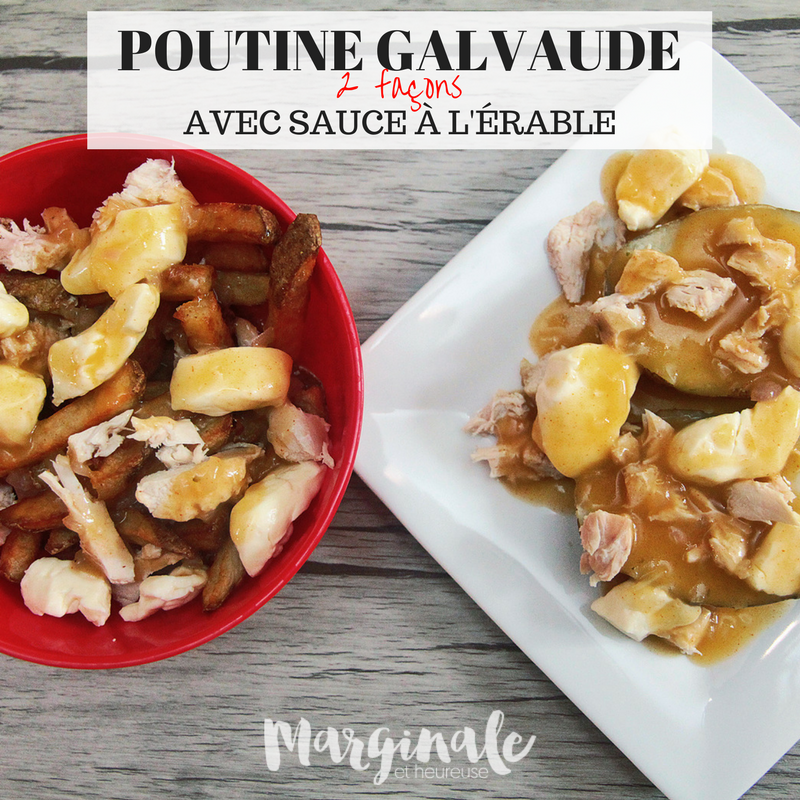 Pour le 150e anniversaire du Canada, les Producteurs de poulet du Canada m’ont mise au défi de créer une recette qui pour moi sonnait « Canada ». Vous connaissez ma passion pour la poutine (j’habite Drummondville après tout!) alors bien entendu, j’ai décidé de revisiter ce classique ou plutôt sa petite soeur, la galvaude avec une délicieuse sauce brune à l’érable qui pourrait également tout simplement napper une poitrine de poulet cuite sur le BBQ ou ou ou… accompagner n’importe quoi en fait. Elle est juste trop bonne! Je vous partage donc ma recette ainsi que des informations sur un Twitter party à venir ainsi qu’un gros concours!
