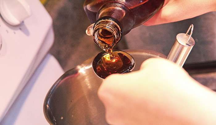 Dans une casserole à feu moyen, faire fondre la margarine et faire revenir les oignons. Ajouter la farine et bien mélanger avec un fouet. Lorsque le mélange prend une couleur légèrement dorée, ajouter le bouillon de poulet et bien mélanger. Ajouter le sirop d’érable, le paprika et la sauce Worcestershire et porter à ébulition.