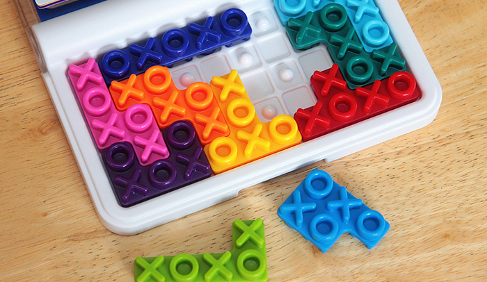 Il faut remplir une grille avec des pièces de X et de O en suivant un plan sur lequel certaines pièces sont déjà placées. Il y a 120 défis à résoudre et plus ça va, plus c’est difficile.