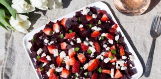 Salade de betteraves, fraises et feta avec le rosé parfait pour...