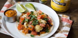 Tacos au chou-fleur, lentilles et haricots noirs avec la mayonnaise Mama...